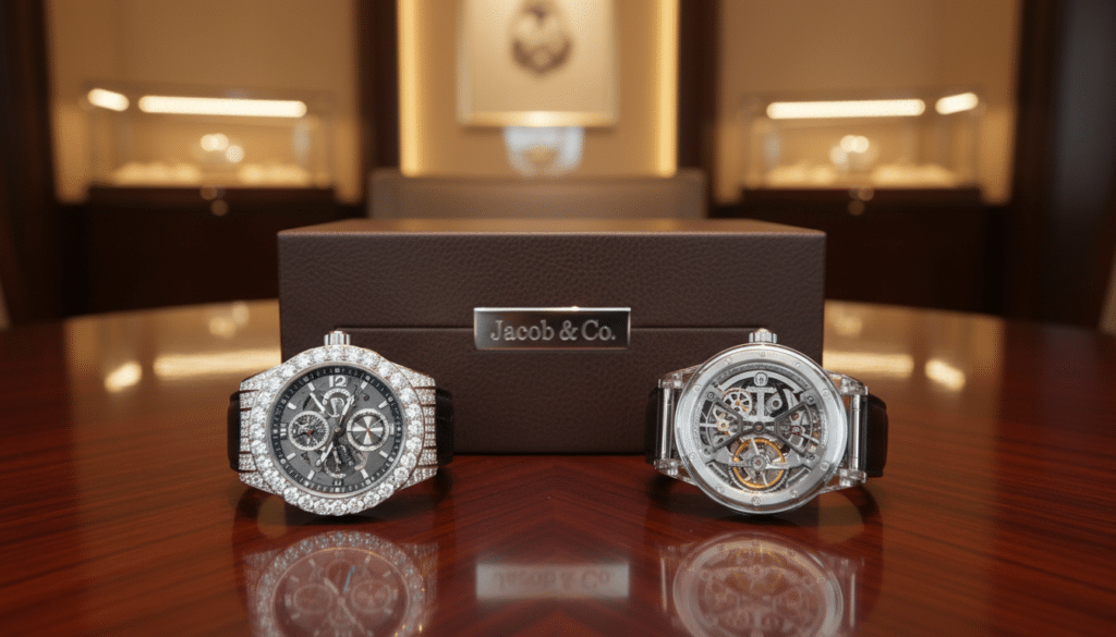 Jacob & Co. Uhren sind besonders aufgrund ihrer einzigartigen Kombination aus höchster mechanischer Komplexität (oft mit revolutionären Komplikationen wie dreidimensionalen Tourbillons oder Musikwerken), kühnen und oft astronomisch inspirierten Designs sowie der großzügigen Verwendung von Edelsteinen und Edelmetallen. Sie sind als Kunstwerke und Statussymbole konzipiert, die die Grenzen der traditionellen Uhrmacherei sprengen.